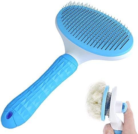 Pet Grooming Brush, Self Cleaning Slicker Brush for Dogs, Cats, Bunnies, Removes Loose Undercoat, Massaging Tool for Long or Short Hair