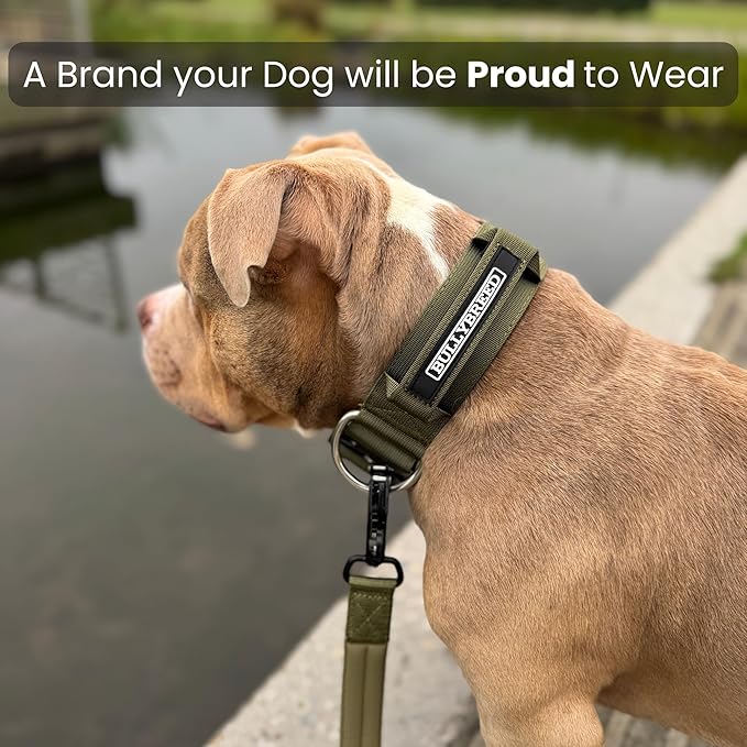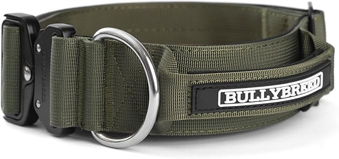 BULLYBREED Premium Dog Colar with Handle, Heavy Duty Dog Collar, Tactical Dog Collar, Quick-Release Metal Buckle, Thick Dog Collar, Dog Collar for Medium Dogs, Dog Collar for Large Dogs (Green, Large)
