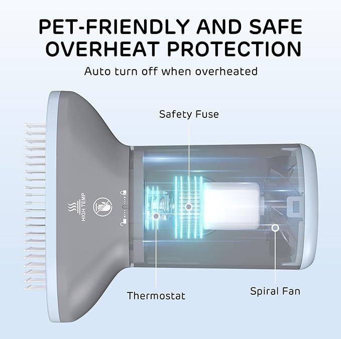 - Overheat Protection: The built-in safety feature automatically shuts off the dryer when overheating, ensuring your pet's safety.