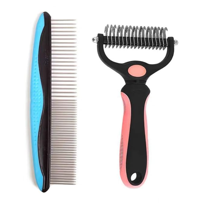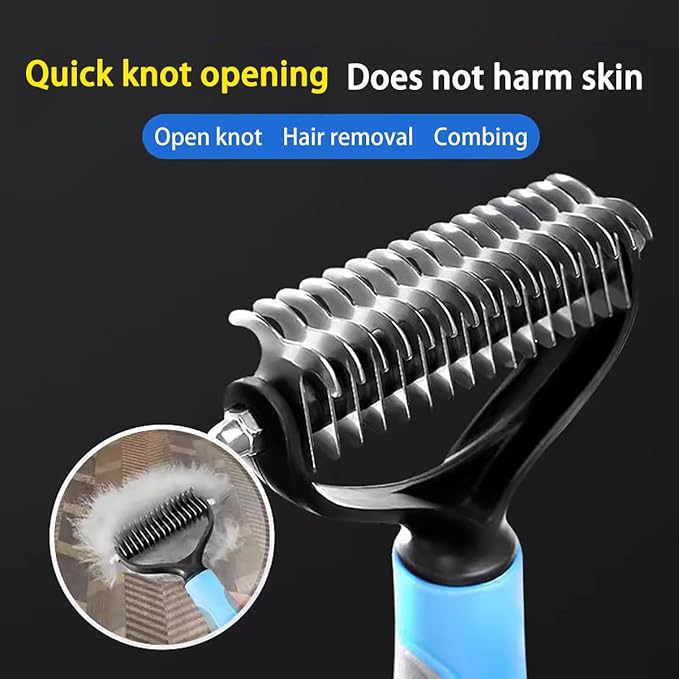 - Dual-Sided Design: This pet dematting tool features two different brushes for effective removal of loose hair, knots, and mats from your pet's coat.
