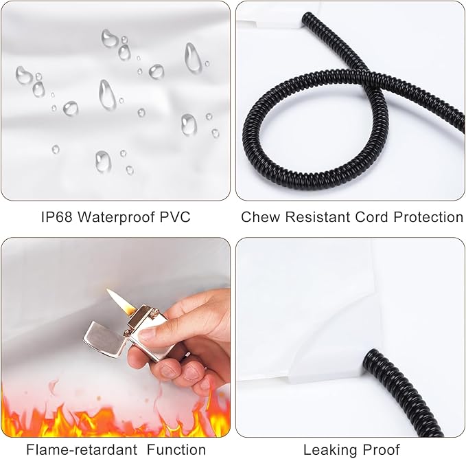 - 7 layer Protective Structure: The PVC envelope with waterproof and flame-retardant function. With UL-certified heating wire protect pets from burns. Built-in intelligent temperature sensor with high temperature protection for preventing overheating to protect pet's safety. Don’t let your pets lay on the pet heating pad directly without a plush cover.