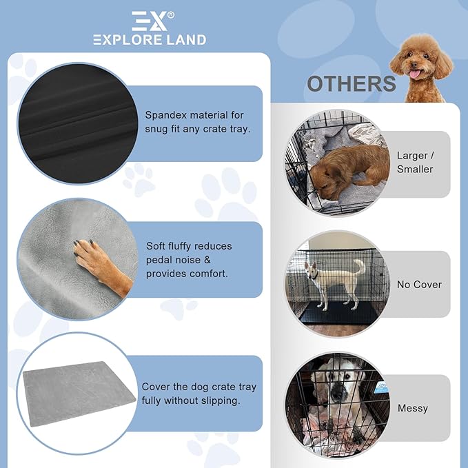 Explore Land Dog Crate Pan Cover with Softer Fluffy Top for 42 inch Dog Cage - Reversible Washable Liner for Dog Crate Tray