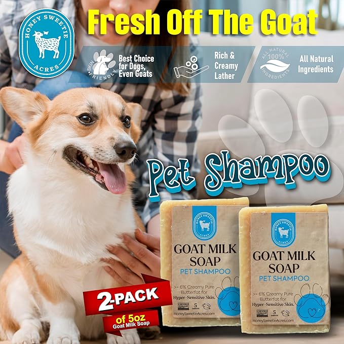 Honey Sweetie Acres 2-Pack All-Natural Pet Shampoo Bar with Fresh Goat Milk - Moisturizing Relief for Dry, Itchy Skin - Leaves A Fresh, Clean Scent - Eliminate Dirty Pet Odor, 5 oz Bar (2 Count)
