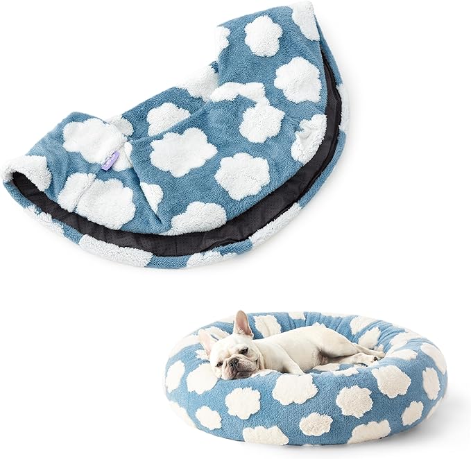 - Snuggle Haven: Love a good cuddle? So does your pet! With its soothing sherpa and raised rim, Lesure's Calming Donut Bed gives your furry friend the perfect nook to curl up in. Offering head and neck support filled with an ideal 2:1 ratio of chopped foam and polyfill to make it a prime spot for relaxation