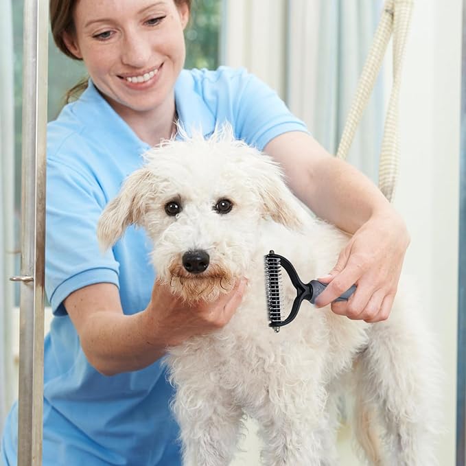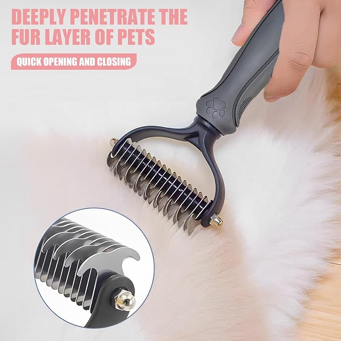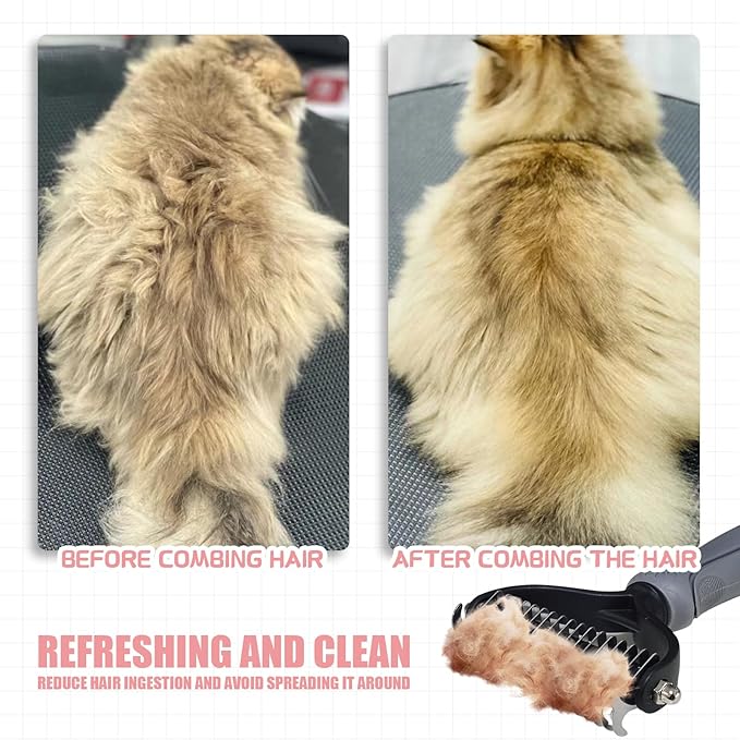 - Pet Safety:The design of this undercoat brush for dogs provides a safer experience than traditional combs for pet safety. The dog rake brush for shedding has sharp teeth that can prevent hair from being pulled out, and a blunt rounded end that can prevent scratches and irritation to the pet's skin