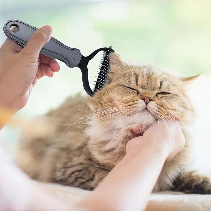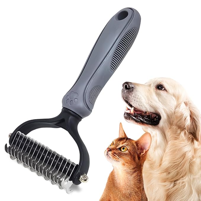 Pet Deshedding Tool - 2-in-1 Double-Sided Bottom Undercoat Rake for Dogs and Cats, Grey