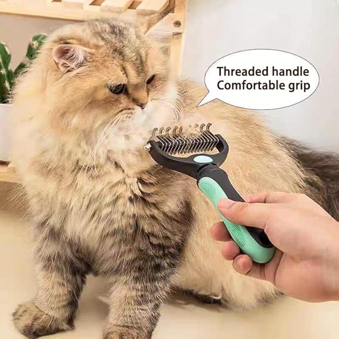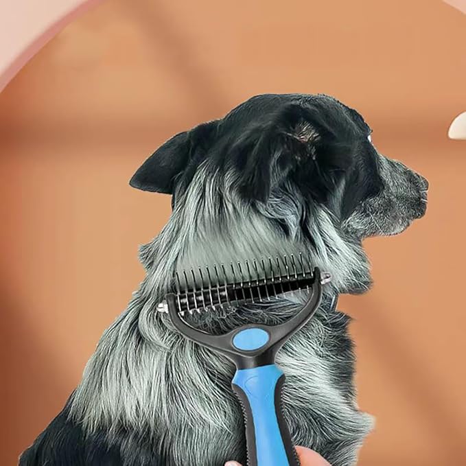 - Dual-Sided Design: This pet dematting tool features two different brushes for effective removal of loose hair, knots, and mats from your pet's coat.