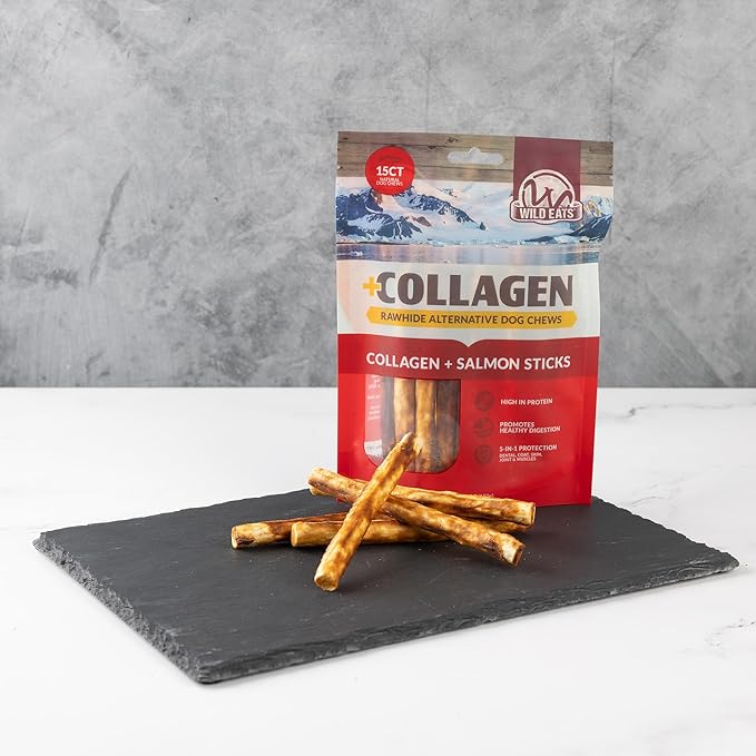 Real Salmon Collagen Sticks for Dogs, (15ct, 1cm Thick) Healthy Bully Stick - Long Lasting Dog Chew Treat