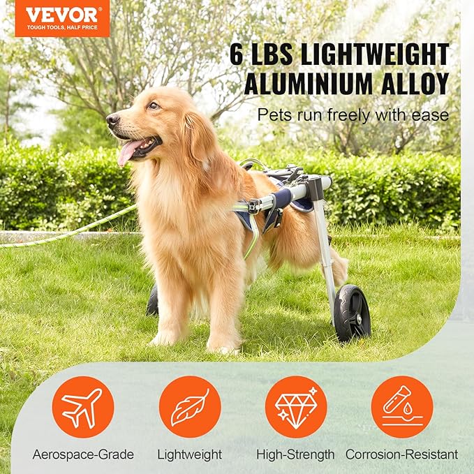 VEVOR Dog Wheelchair for Back Legs, Pet Wheelchair Lightweight & Adjustable Assisting in Healing, Dog Cart with 2 Wheels for Injured, Disabled, Paralysis, Hind Limb Weak Pet (Large)