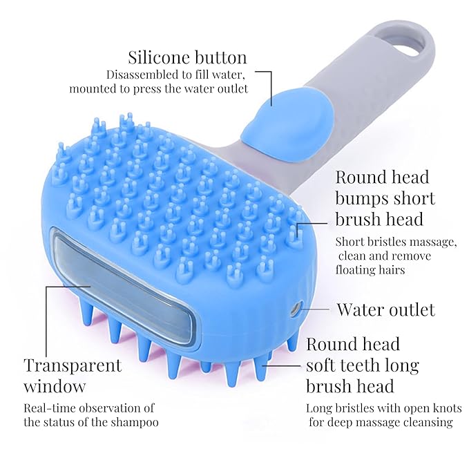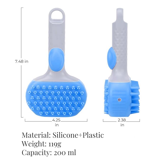 - Convenient Liquid Filling: Our pet brush with large opening and 200 ml capacity eliminates the hassle of repeatedly adding shower gel, while the pneumatic pressure dispensing button ensures precise and leak-free dispensing; Plus, our handy visualization window allows you to monitor the liquid level at a glance