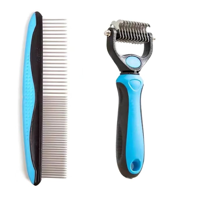 Pet Dematting Tool 2 Pack Double Sided Undercoat Rake & Dematting Comb for Cats and Dogs for Detangling Matted or Knotted Undercoat Hair (Blue & Black, Small)