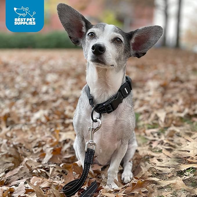 Best Pet Supplies Reflective Dog Collar with Adjustable Length, Heavy-Duty Buckle, and Strong Leash D-Ring, Training, Walking, Jogging Accessory for Small, Medium, and Large Breeds - Black, M