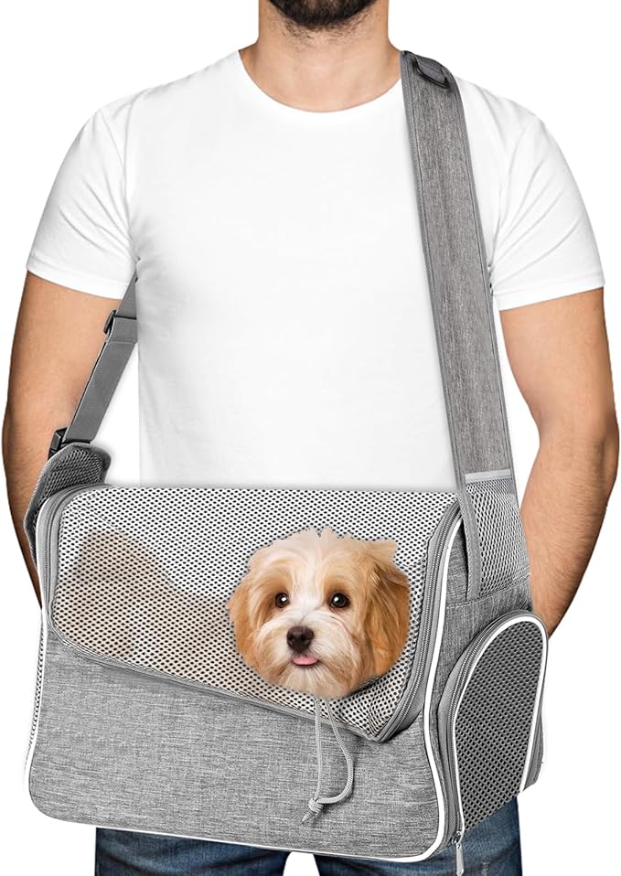 Small Dog Sling Carrier, Multiple Pockets Puppy Carrying Purse Bag, Pet Pouch with Sturdy Pad, Cat Bag for Outdoor Travel, Carrier for Dog Cat Up to 13 lbs