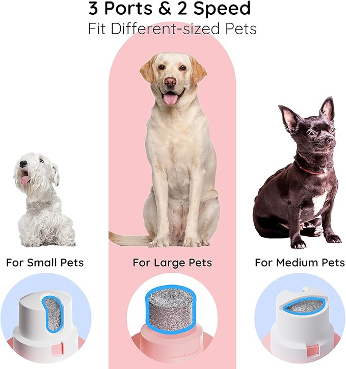 - ✨【2-Speed Switch & 3 Grinding Ports】: This dog nail trimmer comes with advanced 2 adjustable speed (7000-8000RPM) & 3 grinding ports, nail grinder is widely applied to small, medium, large pets, simply choose the appropriate port and speed depending on your pet's size and nail hardness. Ensure smooth & quick grinding for your cats dogs nails.
