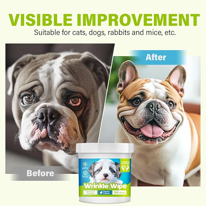 - MULTI-PURPOSE: These wipes not only clean and care for your dog's folds, but also clean tear stains, body, ears, feet and other parts of your dog's body to keep it smooth.