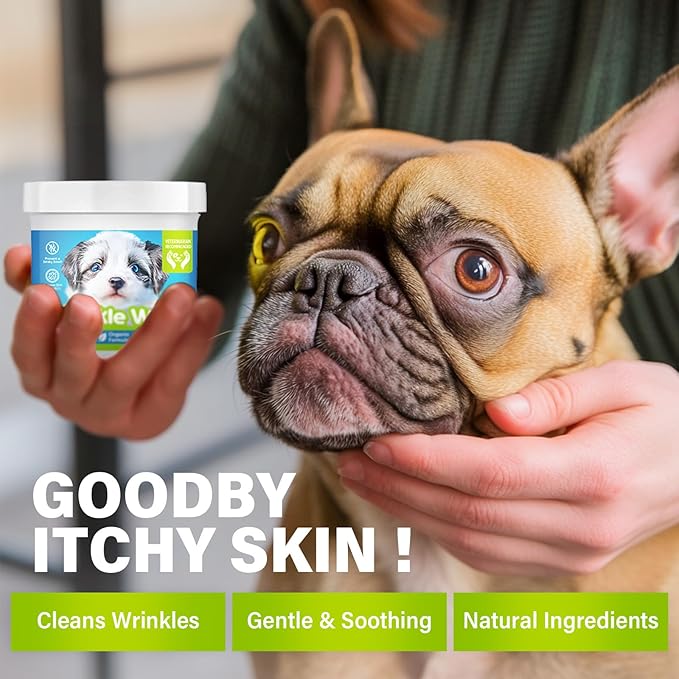 Wrinkle Wipes French Bulldog, Natural Ingredients Dog Face Wipes Dog Wipes for English Bulldog Cleaning & Soothes on Wrinkles, Folds, Tail Pockets