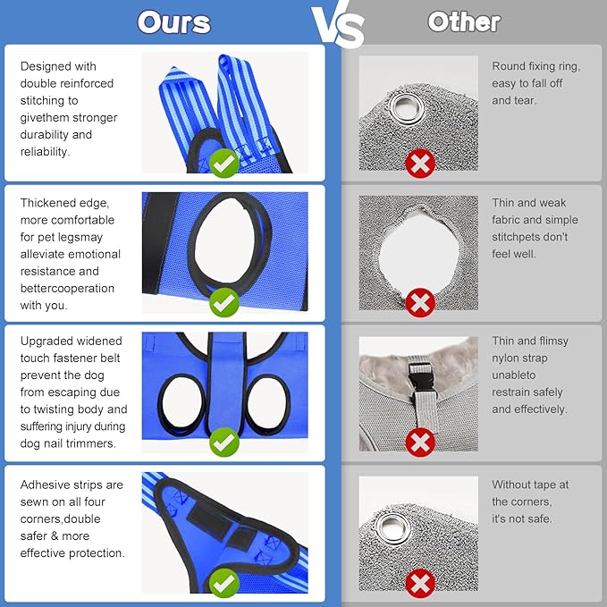 - ERGONOMIC DESIGN FOR COMFORT: Soft,breathable material supports your pet while keeping them calm during grooming,medical treatments.the dog hammock for nail trim made of double-layer fabric : Inner fabric use High-density knitted materia with breathable 3D air-mesh,thickened edge and high-density knitted to make it more comfortable and durable.Besides,Thickened edge of the front and rear legs can reduce friction to protect pets