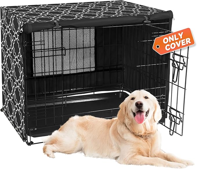 X-ZONE PET 48" Dog Crate Cover for Indoor/Outdoor - Heavy Duty Polyester Pet Kennel Cover Fits for Wire Dog Cage Black Print
