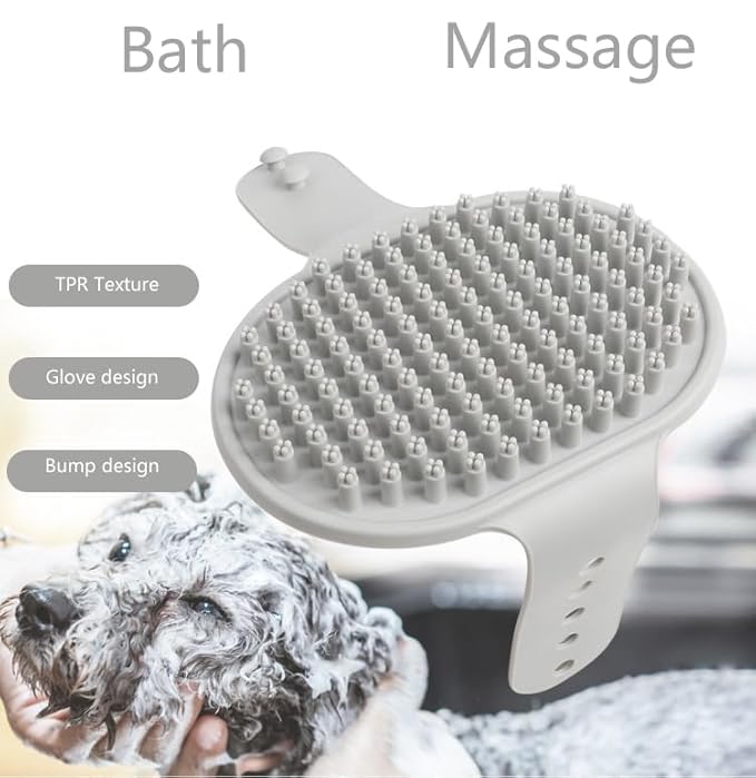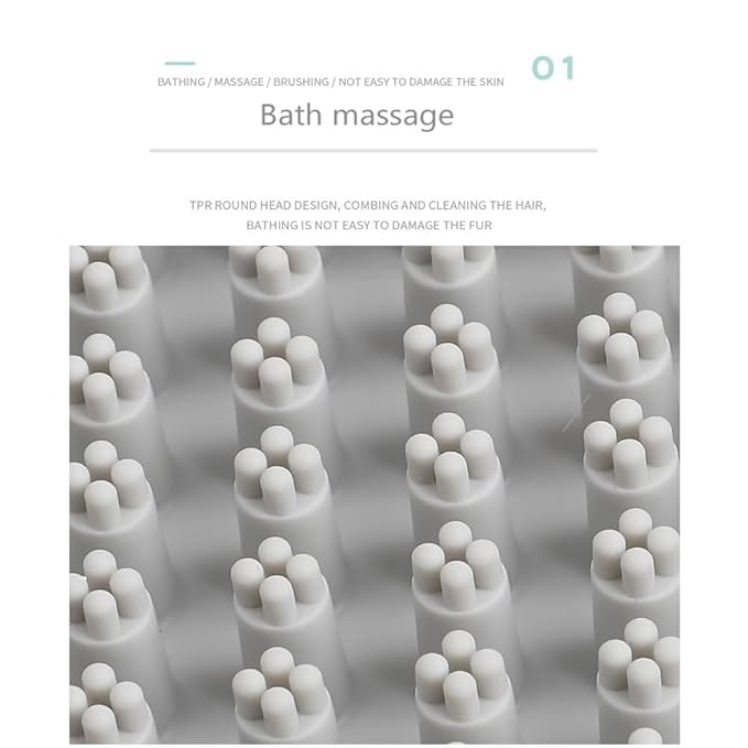 - High Quality Material】:Made from high-quality soft TRP rubber material and craftsmanship,the dog bath brush scrubber is safe, comfortable and will not harm the pets' skin.
