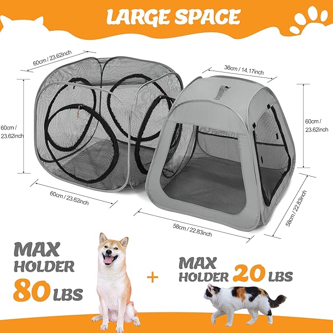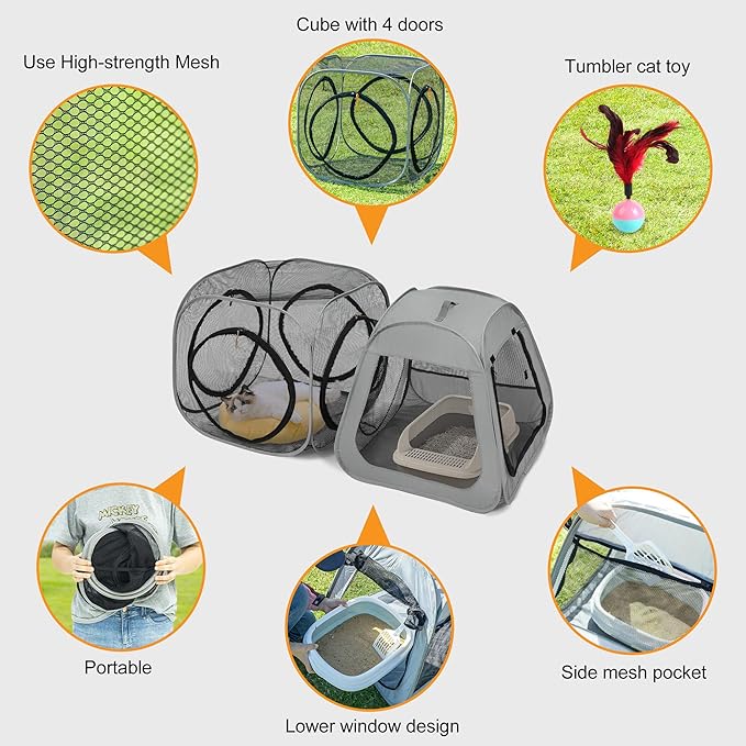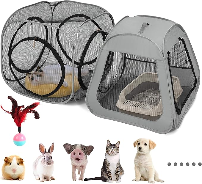 Portable Cat Playpen, Trapezoidal Design for Better Standing, Foldable Pet Tent for Indoor and Outdoor Use,Dog Playpen, Outdoor Cat Tent, Cat Houses & Condos for Kitten,Cat,Puppy and Small Animals.