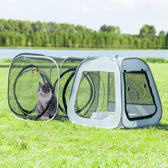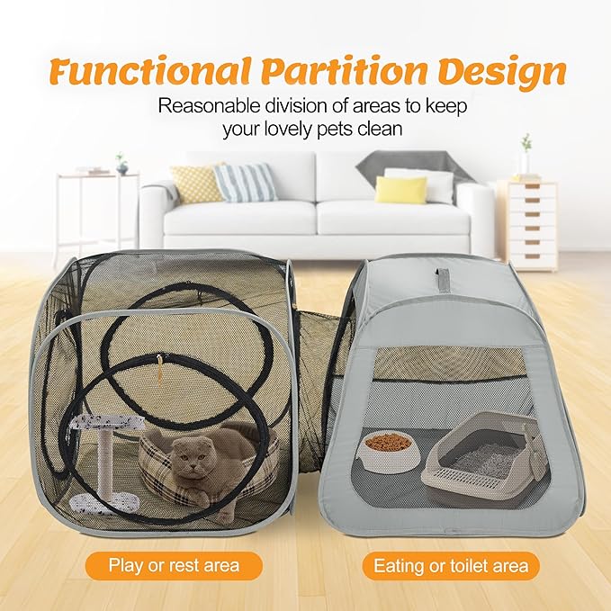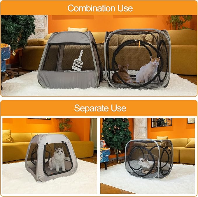 - Separate-areas:Cat tent with 2-separate areas for cats to feed, rest, and use the litter box individually, creating a clean and comfortable living space for your feline friend.