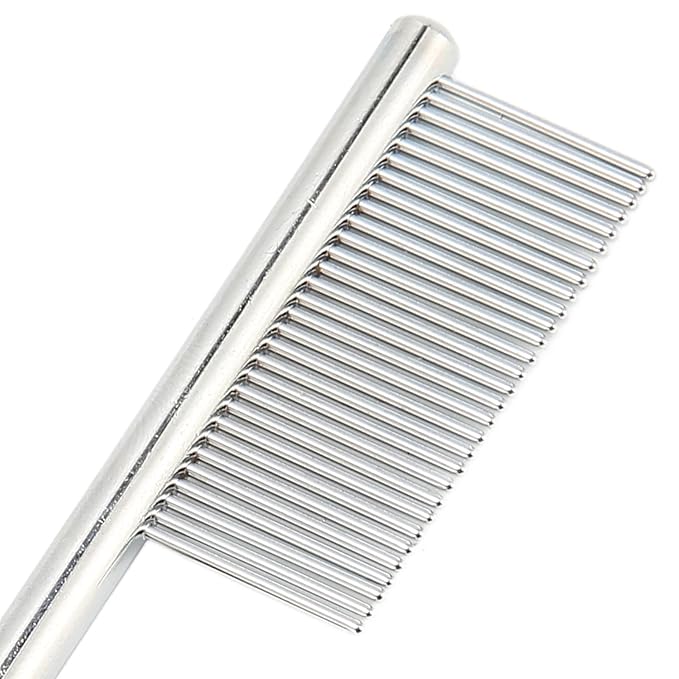 - [FINE TOOTH SPACING]: The rounded tips and fine spacing of this flea comb for dogs make it easy to access hair, while the sturdy steel needles ensure a long lifespan.
