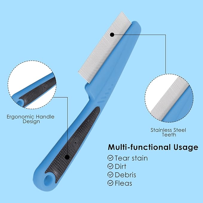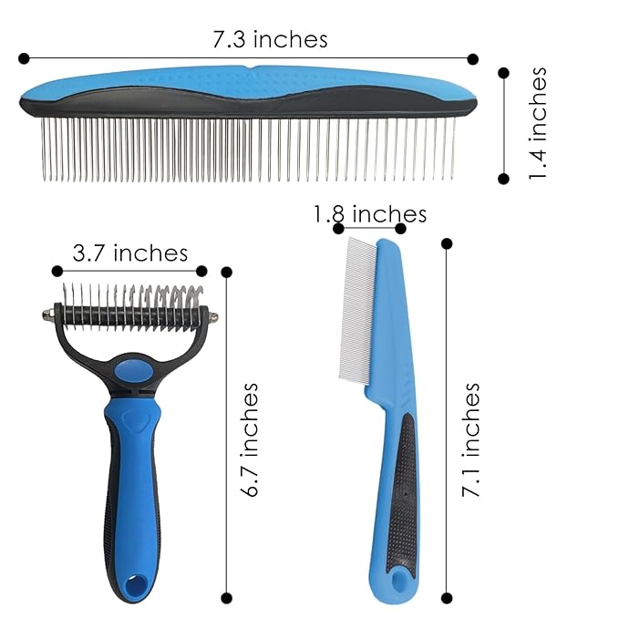 - 【Easy Dematting, Deshedding and Removing Fleas】:The Grooming brush and comb helps effortlessly dematting and reduces shedding while the flea Comb helps to get rid of fleas.A must have pet comb kit for shedding, pet supplies, cat supplies, dog supplies metal comb for dogs shedding.