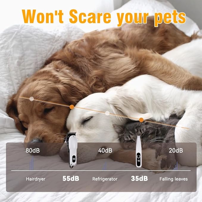 - 4, Low vibration and quiet design: Keep noise levels below 55 db during use, helping to prevent stress reactions in pets. By reducing noise, pets can receive care in more comfortable and relaxed environment, alleviating fear and anxiety, and enhancing the overall grooming experience.