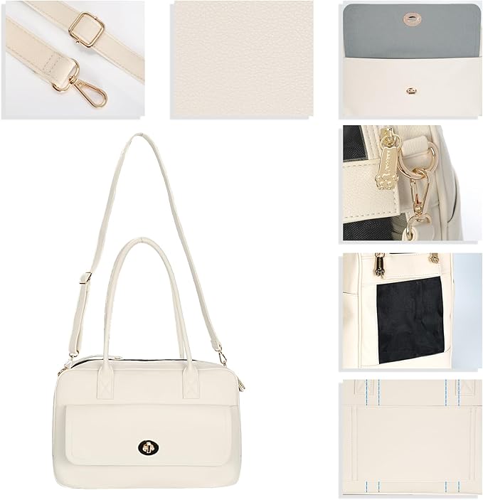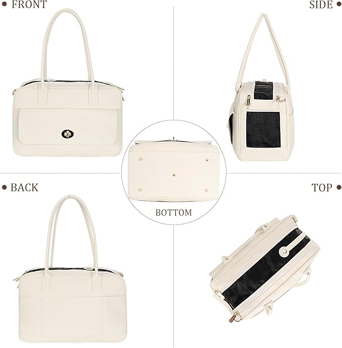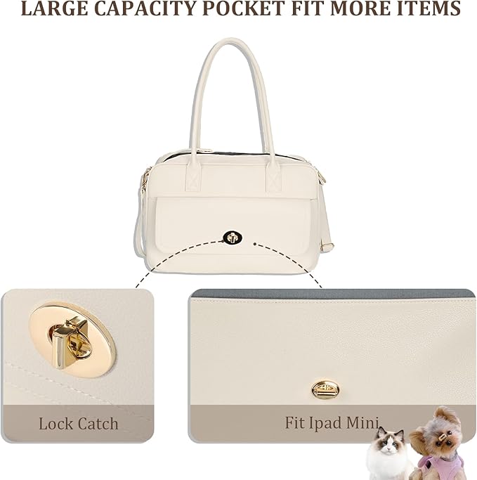 Fashion Pet Carrier Dog Purse Carrier Soft-Sided Carriers for Puppy, Stylish Leather Handbag Travel Pet Bag for Small Dogs Cats, TSA Airline Approved