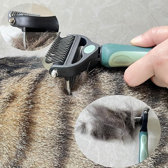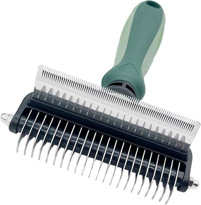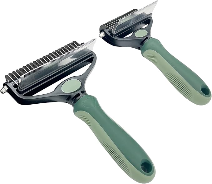 - Dual-Sided Design: One side features stainless steel teeth for detangling and dematting, while the other has a comb for brushing and smoothing the coat