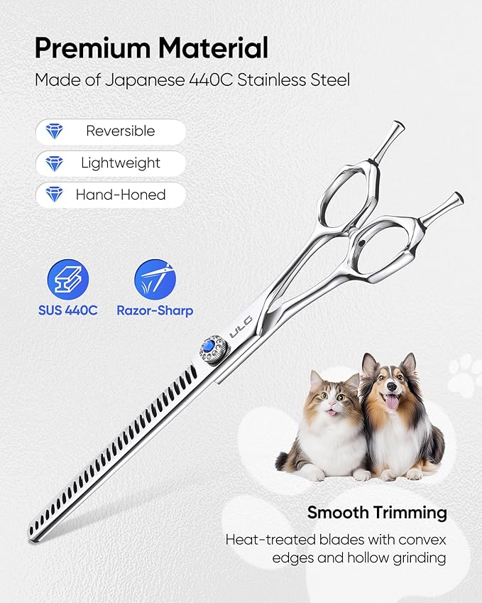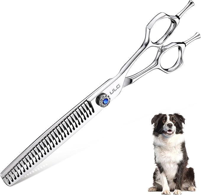 ULG Professional Dog Grooming Scissors 7.5” Straight Chunker Shear 65%-75% Thinning Rate 440C Japanese Stainless Steel Tension Adjustable Left & Right Handed Pet Grooming Shears