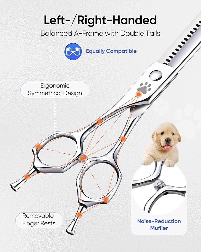 - Noise-Reduction Feature: Built with a silencer pad between two handles to ensure a quiet trimming session, helping to ease your pet’s anxiety and stress during grooming. The muffler also increases rebound for easier cutting.
