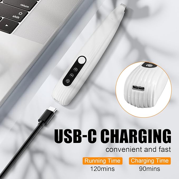 - Pet Micro Precision Trimmer: This dog paw trimmer features a mini blade trimmer head that's perfect for getting into nooks and crannies, making it perfect for combing small areas like paws, eyes, ears, face, and buttocks quickly and efficiently. It's perfect for dogs and cats, ensuring a neat and tidy appearance.