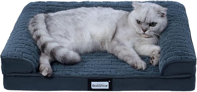 BALANCE Orthopedic Dog Bed, Egg Crate Foam Dog Couch for Pet Sleeping, Pet Sofa with Removable Washable Cover & Nonskid Bottom, Comfy Dog Bed for Small Dog, Blue