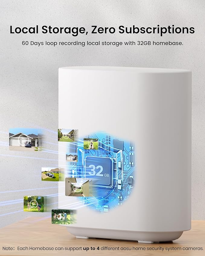 - Zero Subscription Fees & Enhanced WiFi Connectivity: Serving as the intelligent hub, the powerful homebase includes local 32GB encrypted storage with free playback and secure video downloads for up to 60 days. It protects your privacy while ensuring reliable access. Enhanced dual-band WiFi (2.4G & 5G) guarantees stable, lag-free viewing and extends the wireless range for optimal connectivity.