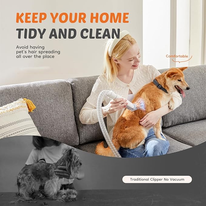 Pet Grooming Vacuum Kit, Hair Vacuum with Cordless Clippers with Capacity, Low Noise Operation, 3 Suction Modes, and 5 Essential Grooming Tools for Dogs and Cats
