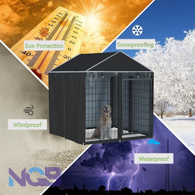 NGB Outdoor Dog Kennel Cover,4.2'Dx4.2'Wx4.5'H 600d Heavy Duty Waterproof Dog Cages Cover for Multiple Brands of Dog Kennels,Full Coverage Windproof Anti-UV,Cover Only,Black.(No Kennel)