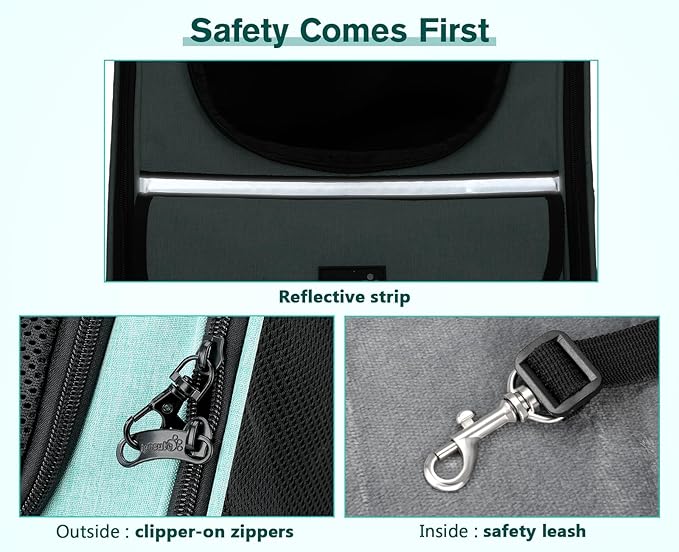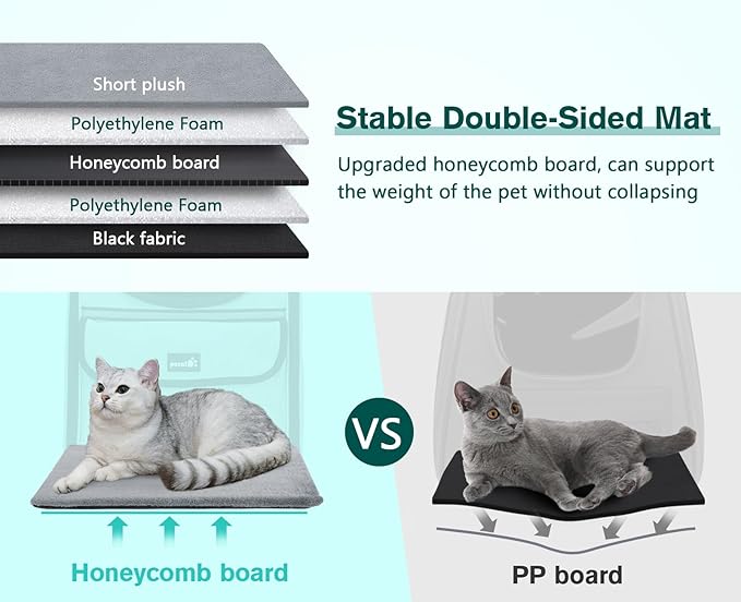 - 【 STURDY & SAFETY 】: The pet backpack carrier has sturdy steel wire frames on the left and right sides, as well as fiber rods on the top and bottom, which can effectively prevent collapse, allowing for maximum stability and shape retention. The double-sided pad bottom features a removable and washable cover. It also contains pearl cotton and honeycomb boards in the middle, which optimize stability and enhance comfort. The built-in adjustable safety rope and locked zippers prevent your pet from escaping