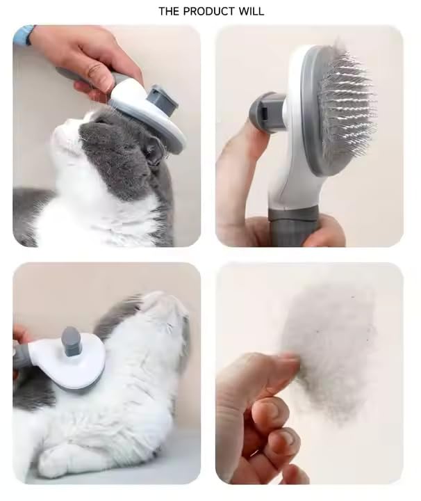 - Self Cleaning Head: Featuring a unique self-cleaning mechanism, this brush makes cleanup simple. With just a press of the one-click button, trapped fur is instantly released from the bristles, saving you time and effort. No more digging through the brush to remove hair—just press and release, and you’re ready for the next grooming session.