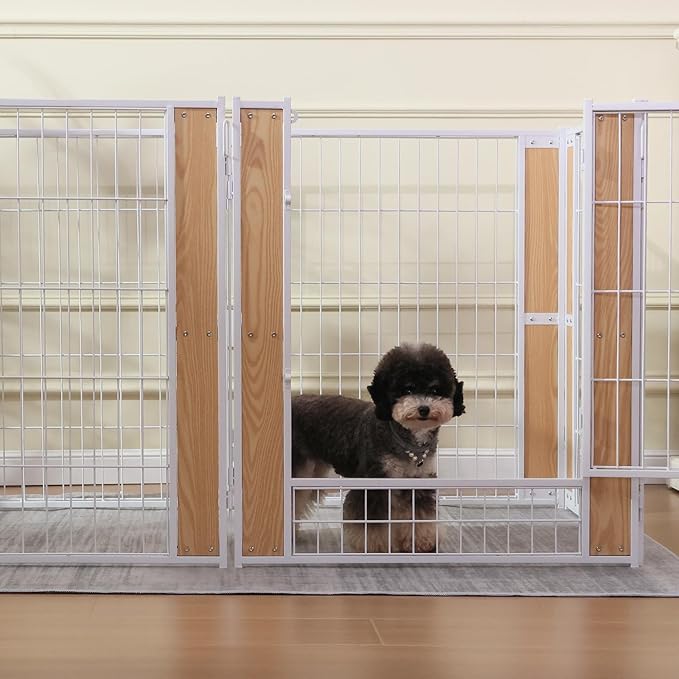 - 【Robust and Aesthetic Structure】Constructed from sturdy metal components, our puppy playpen is built to last, resisting damage from small pets while enhancing its longevity. The design is not only strong but also aesthetically pleasing, blending seamlessly with your home decor. Rounded edges safeguard your pets against scratches, ensuring their safety within the enclosure.