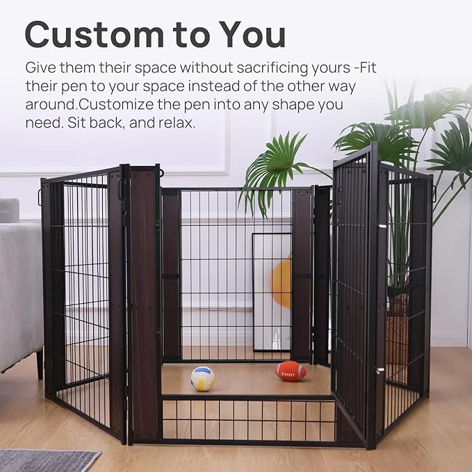 - 【Robust and Aesthetic Structure】Constructed from sturdy metal components, our puppy playpen is built to last, resisting damage from small pets while enhancing its longevity. The design is not only strong but also aesthetically pleasing, blending seamlessly with your home decor. Rounded edges safeguard your pets against scratches, ensuring their safety within the enclosure.