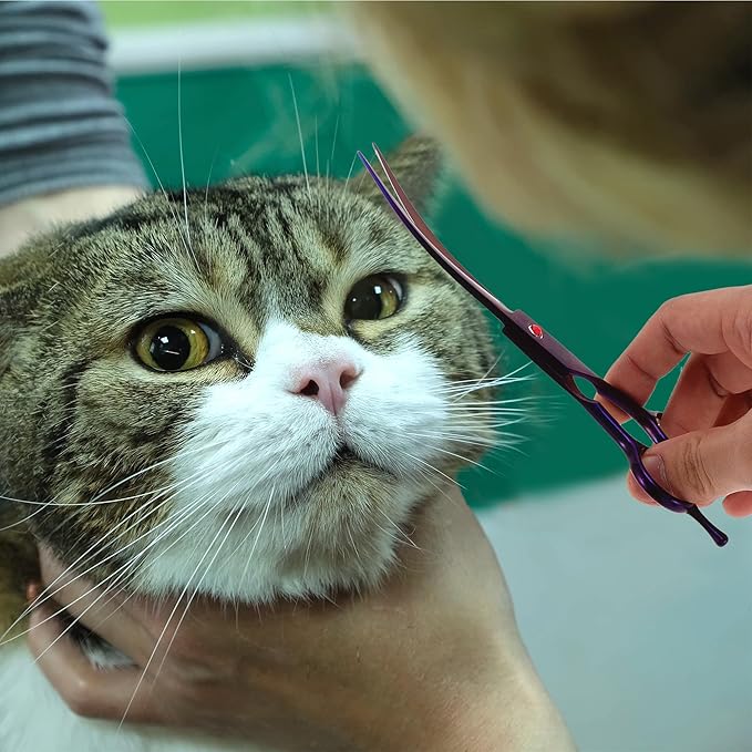 - Easy Trimming: With their curved design, these curved dog grooming scissors excel at enabling easy and precise trimming around delicate areas such as the eyes, eyebrows, face, hindquarters, and thighs. This feature makes them especially suitable for beginners, allowing for detailed grooming without compromising safety or quality.