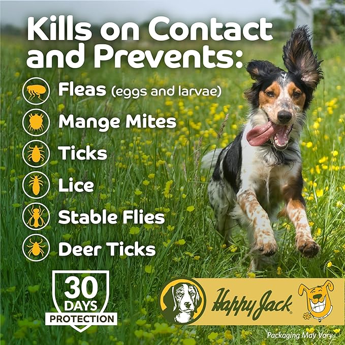 Happy Jack Kennel Dip Dog Flea and Tick Treatment & Prevention, Made in USA, Spray Yard & Home 30-Day Control, Kills Fleas, Ticks, Deer Ticks, Mange, Lice, for Puppies, Small to Large Dogs (4 oz)