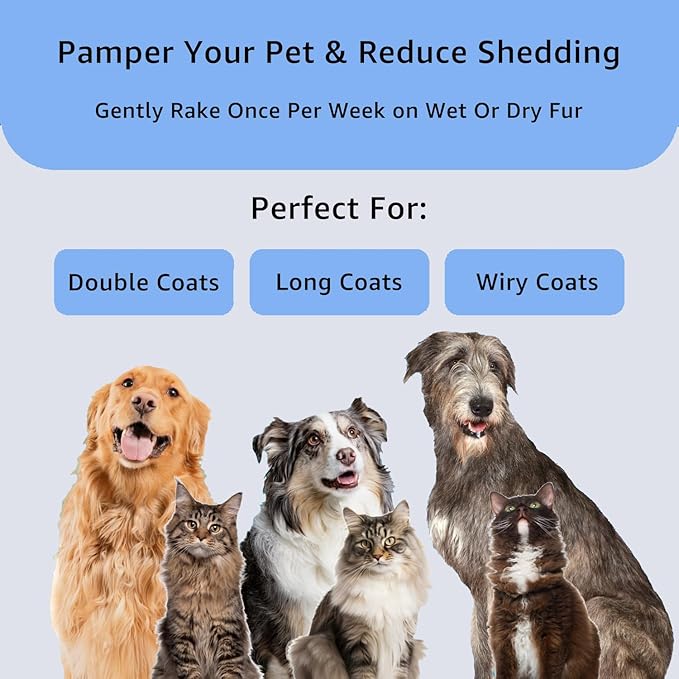 - 【Pet Friendly】:Our pet deshedding brush are made of stainless steel, which is rustproof and corrosion-resistant, sturdy, durable and not easy to break and have been polished, without harming the pet's skin