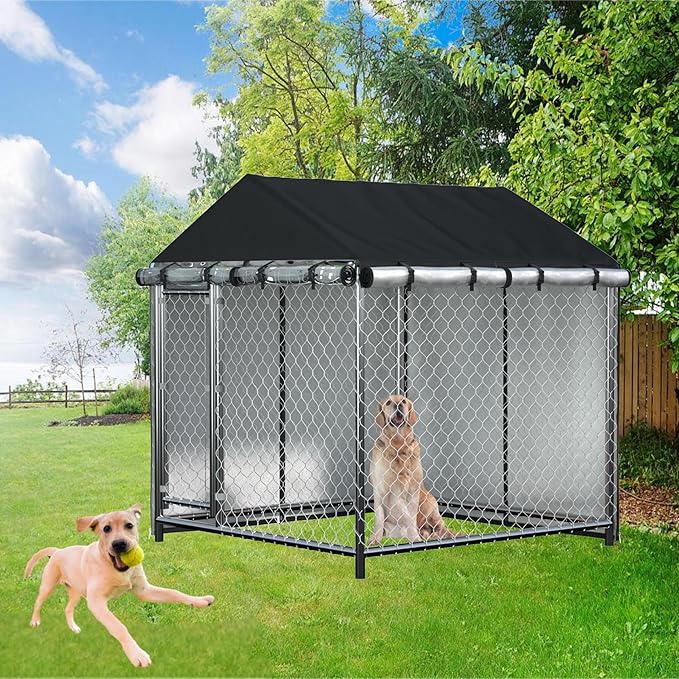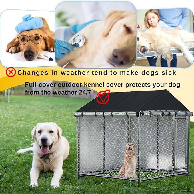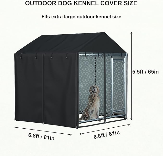 Outdoor Dog Kennel Cover Waterproof Dustproof Heavy Duty 600D 6.76 ft X 6.76 ft X 5.5 ftOutdoor Dog Pen Cover Heavy Duty Dog Kennel Mesh Large Cage Cover (cover only)