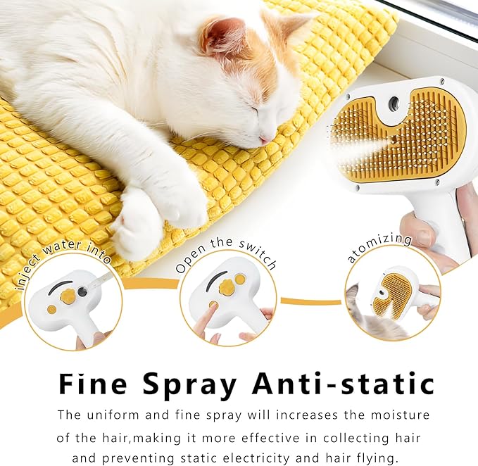 - 【3 in 1 Cat Steamy Brush】: Multi-functional pet grooming tool that combines the functions of hair removal, cleaning and massage. While removing hair, clean dirt from hair and skin. Let you don't need to worry about cleaning your beloved pet every day. Note: Our cat brush only converts water into spray and does not heat it