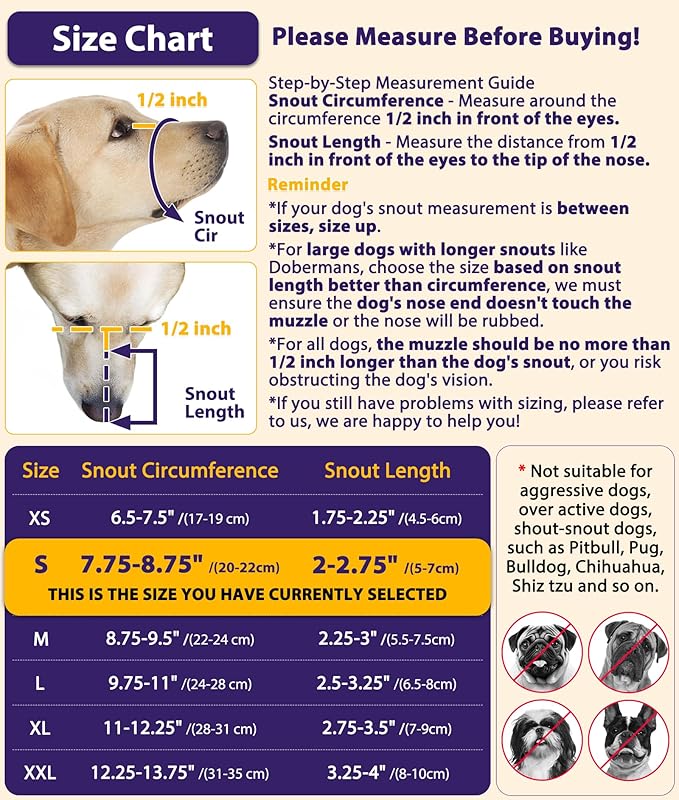 - Adjust for Perfect Fit-We add an adjustable Hook and Loop closure at the front opening of the dog muzzles, making it easy to adjust the better-fit tightness according to the shape of your dog's snout. What's more, this design makes the dog mouth guard difficult for even a naughty or active dog to escape while walking outdoors. This muzzle for dogs is useful for vet visits, grooming, walks, wound recovery, and so on.