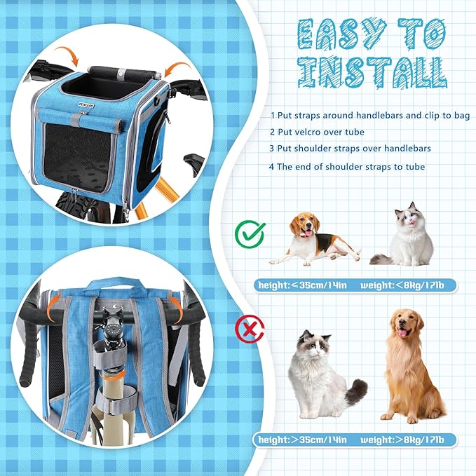 - Foldable and Space-Saving Design:This foldable pet bike bag is designed for ultimate convenience. When not in use, it easily folds down for compact storage, making it perfect for on-the-go pet owners looking for a travel-friendly carrier that saves space.