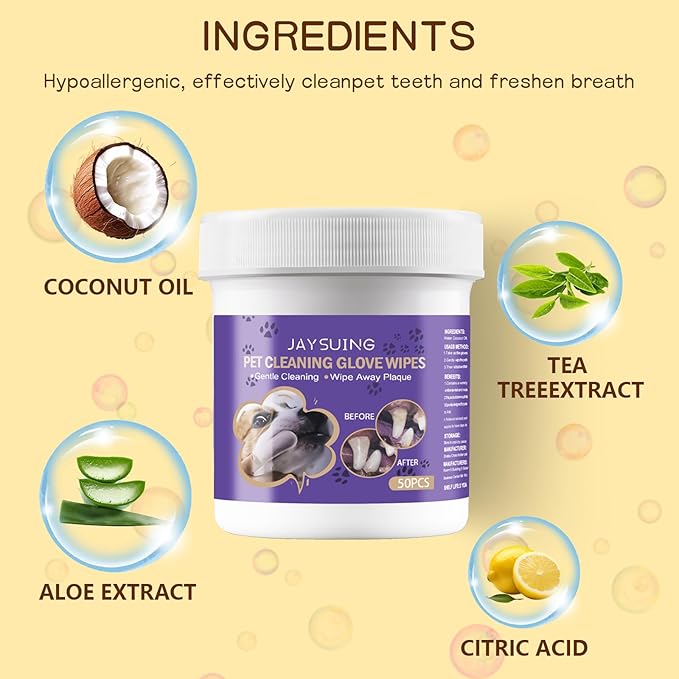 - SAFE AND NATURAL INGREDIENTS: Made with natural plant extracts such as organic coconut oil and aloe vera, our dog teeth cleaning wipes are alcohol-free and chemical-free, making them safe for dogs and cats with sensitive teeth and gums. They are also safe to lick or swallow
