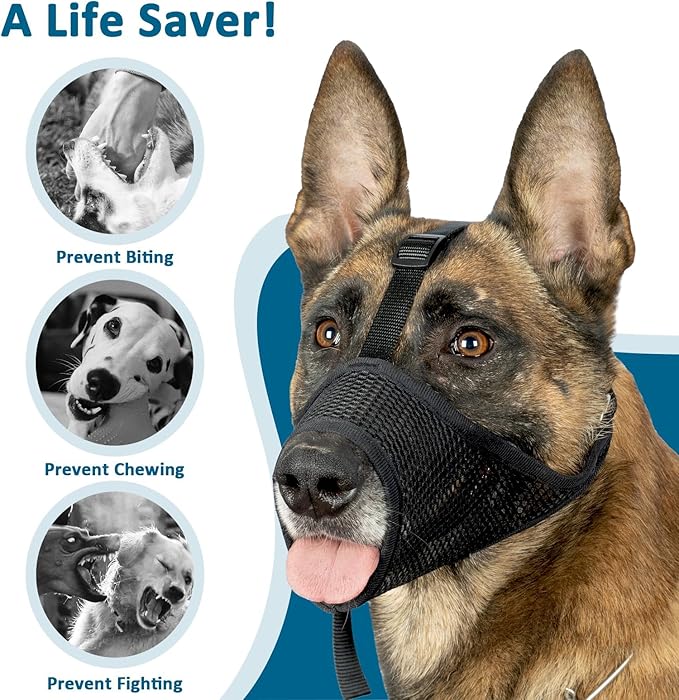 - Muzzle Up for Better Behavior Control-This german shepherd muzzle prevent biting, furniture destruction, excessive barking, and dog fights while allowing panting, drinking, and eating. Ideal for vet visits, grooming, nail trimming, and walking, it fosters friendly interactions with other pets and people. Note: The muzzle is a training tool, not a fix for bad habits, and requires your guidance and positive reinforcement